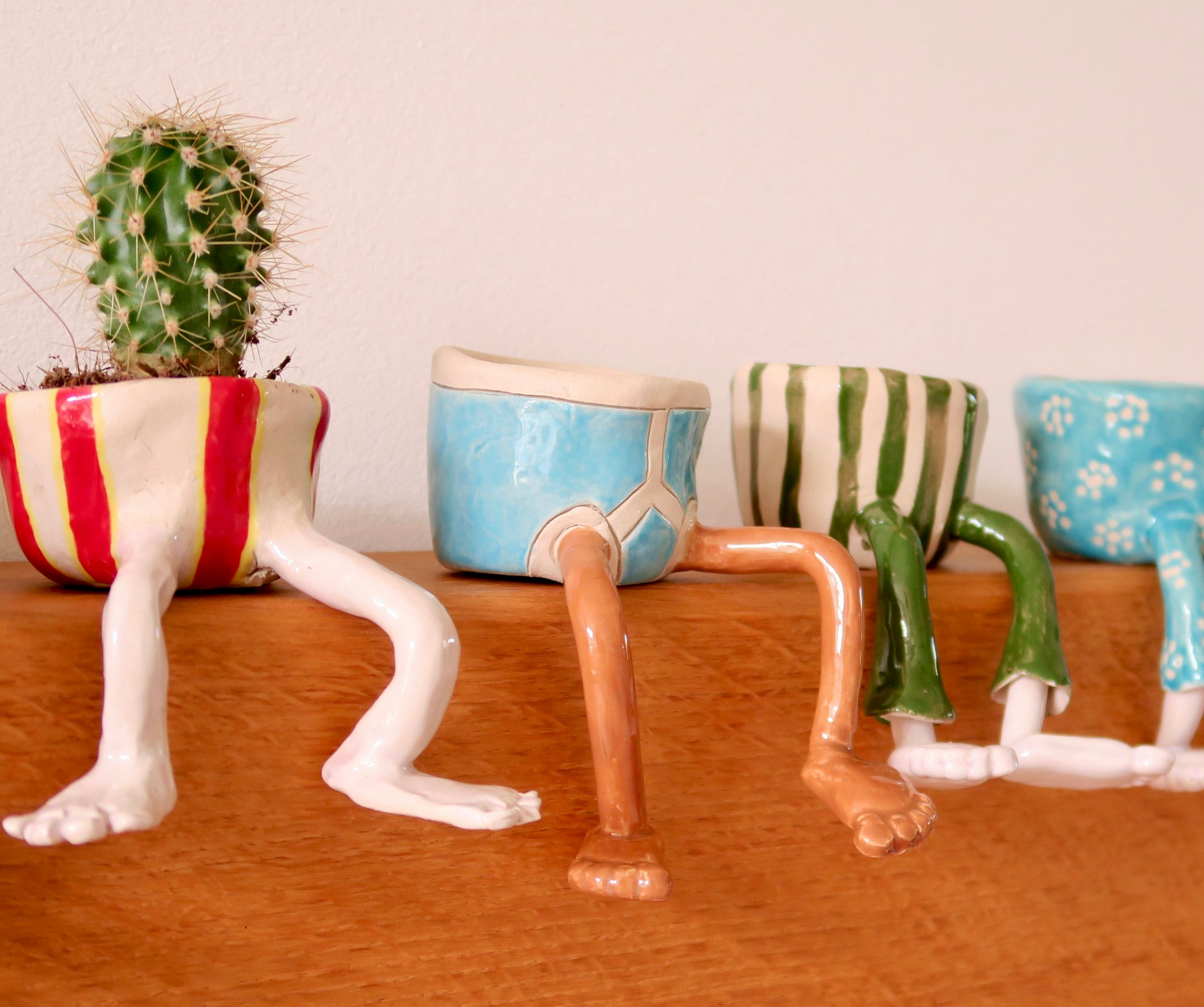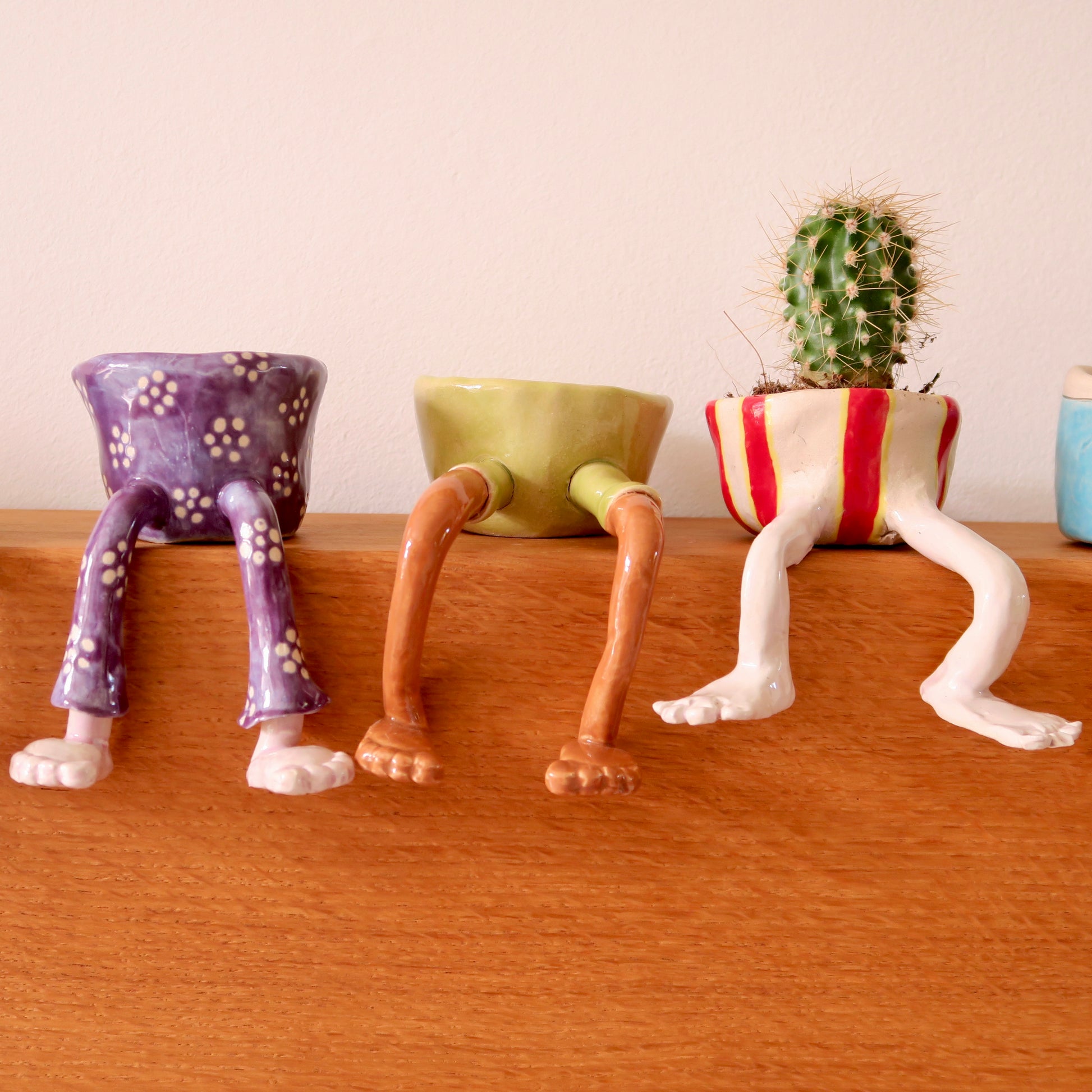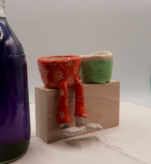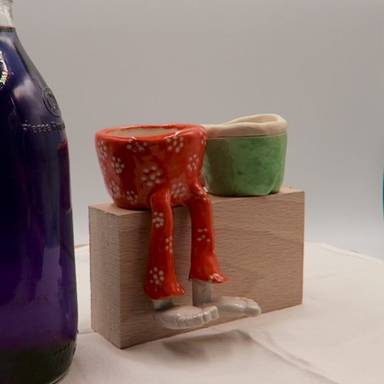 Formed and glazed by hand, no two are ever the same. Every pot has its own character, posture, and perfectly shaped bottom. Designed to sit on a shelf with its legs dangling playfully over the edge, it’s guaranteed to raise a smile wherever it rests.